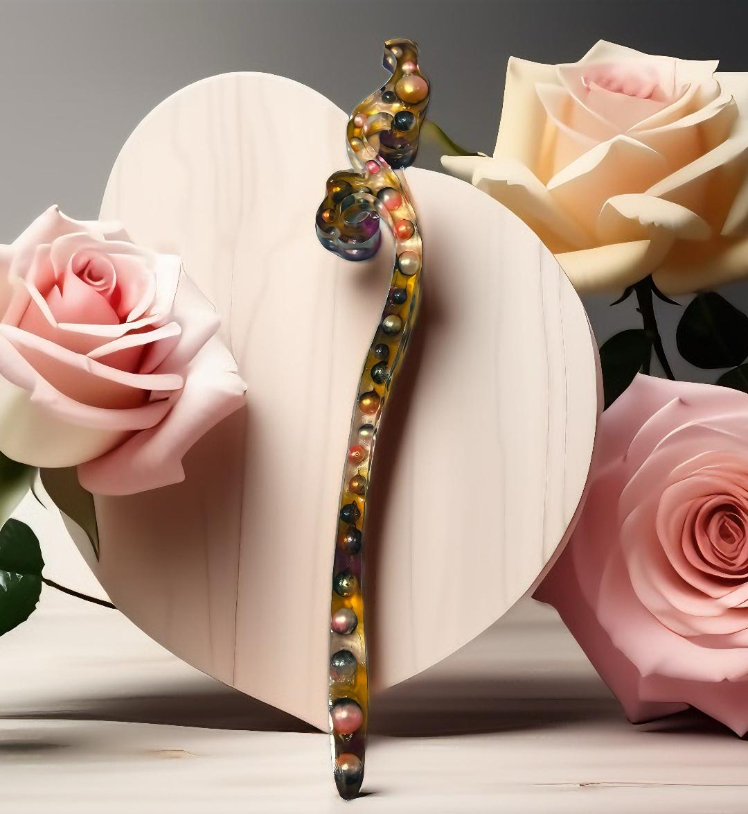 Inspirada en los antiguos accesorios orientales, esta pieza artesanal está hecha a mano en resina con perlas de colores integradas una a una.